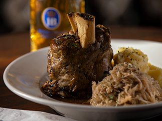 and slow braised for hours. Served with Mashed Potatoes and Imported Sauerkraut